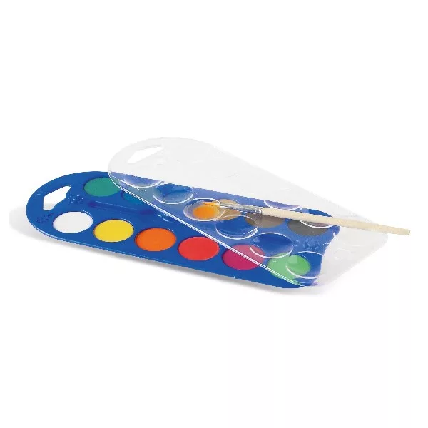 25mm-es, 12 gombos vízfesték ecsettel. A vízfesték teteje festőpalettaként használható.