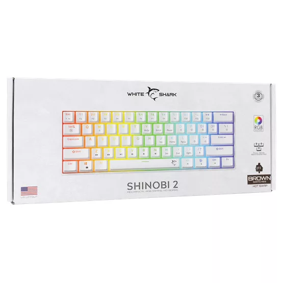 White Shark GK-004231W/BR-US SHINOBI-2 vezetékes mechanikus gamer billentyűzet - fehér - US