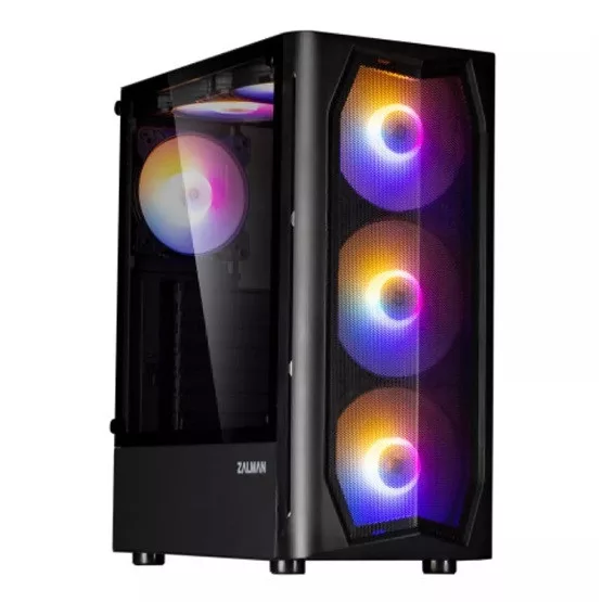 ATX formátumú Midi-torony kialakítású Zalman N4 Rev.1 számítógépház beépített RGB ventilátorokkal.