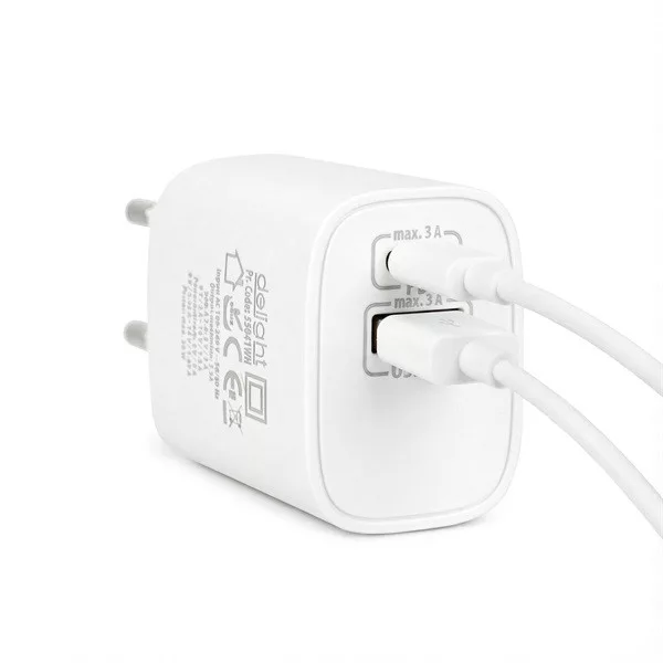 Delight Telefon töltő  - 1db Type-C + 1db USB PD20W gyorstöltéssel, Fehér