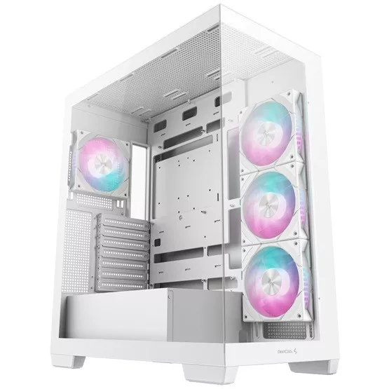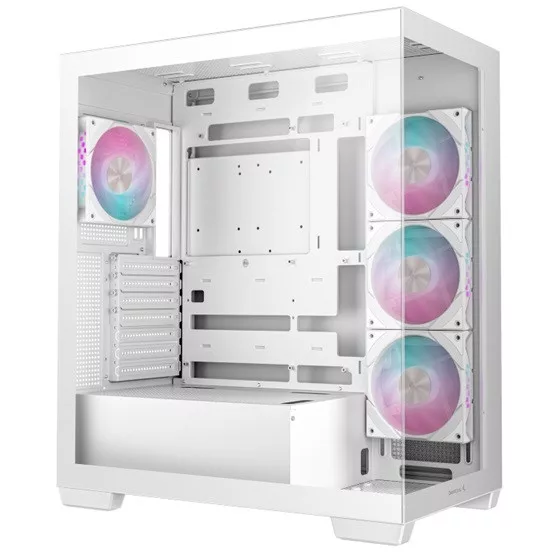 DeepCool CG580 4F WH – Fehér ATX ház prémium hűtéssel és panorámás üvegborítással A DeepCool CG580 4F WH egy stílusos, egykamrás ATX ház, amelyet kifejezetten azok számára terveztek, akik szeretnék megmutatni a gépük belső értékeit. A ház oldalán és elején edzett üvegpanel található, amely az A oszlop hiányának köszönhetően 270°-os betekintést biztosít. Előre telepített 4 ARGB ventilátorral és 360 mm-es radiátor támogatással érkezik, így a látványos megjelenés mellett kiemelkedő hűtést is kínál.