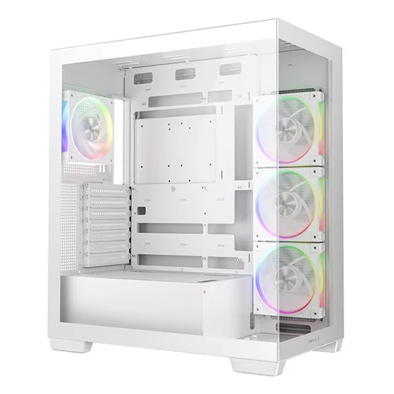 Panorámás edzett üveges ATX fishtank számítógépház 4 db ARGB PWM ventilátorral a látványos RGB világítás és hatékony hűtés érdekében. A fordított elrendezésű, egykamrás kialakítás tágas belső teret biztosít nagy komponenseknek, miközben a beépített kábelmenedzsment egyszerű összeszerelést tesz lehetővé.?