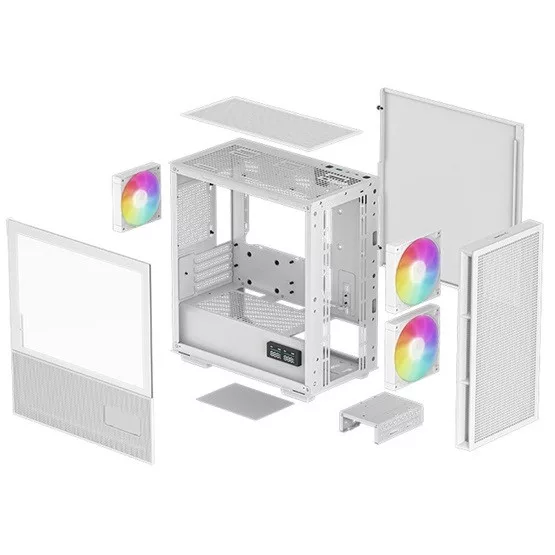 Modern mATX ház digitális kijelzővel és kiváló légáramlással A DeepCool CH360 DIGITAL a legújabb generációs, kis méretű, de nagy teljesítményű számítógépház, amely extra figyelmet fordít a légáramlásra. Előre telepített 2× 140 mm ARGB ventilátorral, 1× 120 mm hátsó ventilátorral és valós idejű CPU/GPU kijelzővel érkezik.