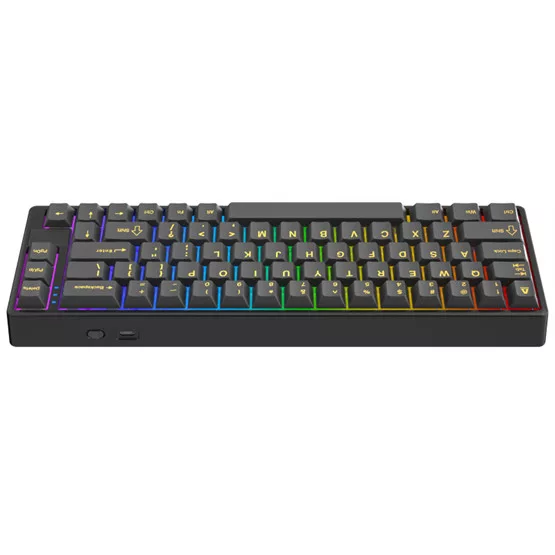 Magyar kiosztású billentyűzet, Kapcsolók típusa: mechanikus, Kapcsolók száma: 68, Gateron switchek színe: piros, Világítás: RGB fényeffektek, Csatlakozás: tri-mode, Kábelhossz: 1.8m, Színe: fekete