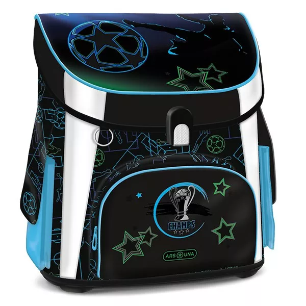 Hátizsák formájú iskolatáska. Könnyű súlyú, formatartó szerkezetű, vízlepergető anyagból. Gerinckímélő, vastagon párnázott, merevített, ergonómikus hátkiképzéssel. Puha, méretre állítható vállpántokkal és plusz állítható pántokkal, amelyekekkel szabályozható, hogy mennyire álljon feszesen a gyerek hátához simulva a táska. Alja tartós kemény műanyag. Nagy felületű fényvisszaverő elemekkel elől, oldalt és a vállpántokon. Felülről könnyen pakolható, teteje FIDLOCK mágneszárral záródik. Belsejében egy textil elválasztó elemmel, két nagy rekesszel. A táska tetején belül átlátszó műanyag órarendtartóval és órarenddel. Oldalán két zsebbel a kulacs részére, elején egy cipzáros zseb az uzsonnás doboz részére. Tetején műanyag fogantyúval. Mérete: 330x410x255 mm. Súlya: 1.2 kg. Táska űrtartalma: 18 l. Terhelhetőség: 12 kg. 3 év garancia.