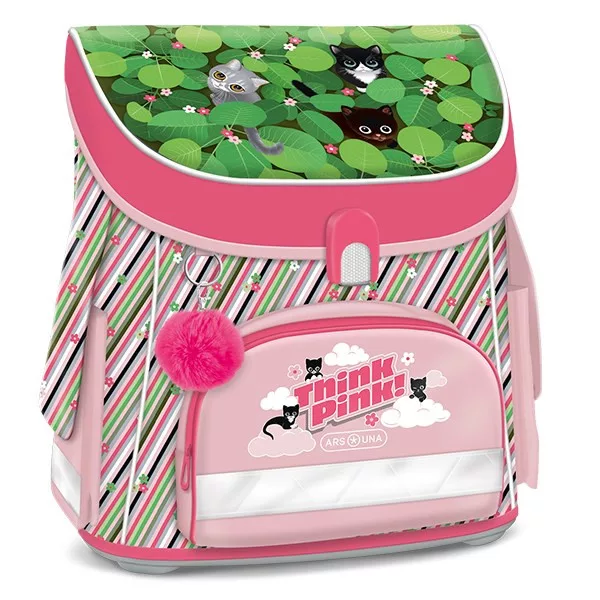 Hátizsák formájú iskolatáska. Könnyű súlyú, formatartó szerkezetű, vízlepergető anyagból. Gerinckímélő, vastagon párnázott, merevített, ergonómikus hátkiképzéssel. Puha, méretre állítható vállpántokkal és plusz állítható pántokkal, amelyekekkel szabályozható, hogy mennyire álljon feszesen a gyerek hátához simulva a táska. Alja tartós kemény műanyag. Nagy felületű fényvisszaverő elemekkel elől, oldalt és a vállpántokon. Felülről könnyen pakolható, teteje FIDLOCK mágneszárral záródik. Belsejében egy textil elválasztó elemmel, két nagy rekesszel. A táska tetején belül átlátszó műanyag órarendtartóval és órarenddel. Oldalán két zsebbel a kulacs részére, elején egy cipzáros zseb az uzsonnás doboz részére. Tetején műanyag fogantyúval. Ajándék pompom a táskához. Mérete: 330x410x255 mm. Súlya: 1.2 kg. Táska űrtartalma: 18 l. Terhelhetőség: 12 kg. 3 év garancia.